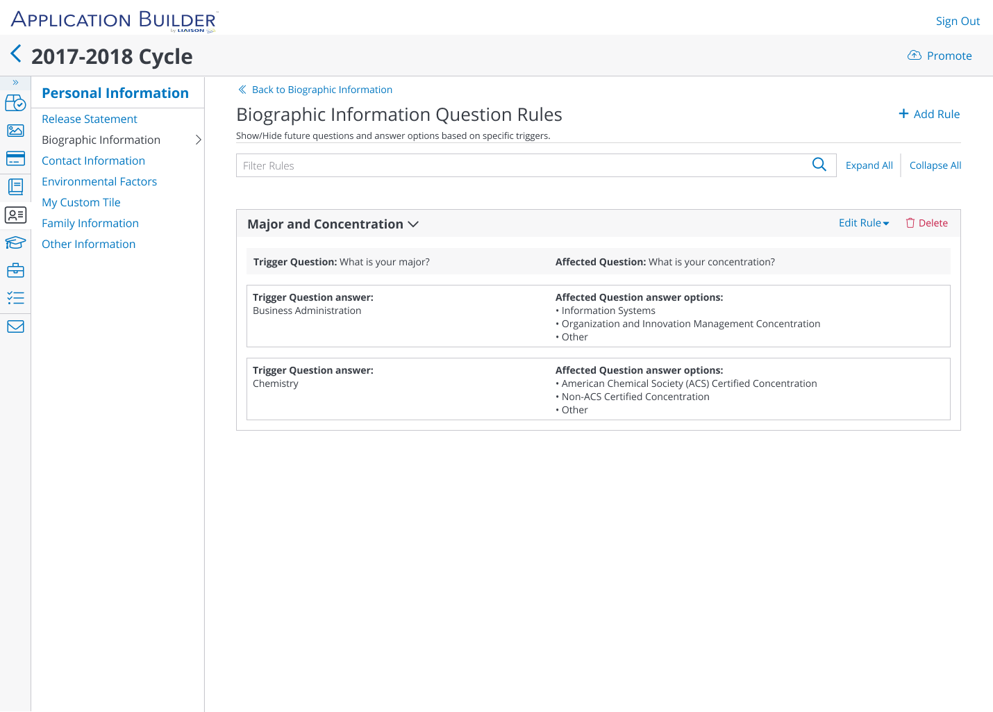 - View and manage existing conditional question rules