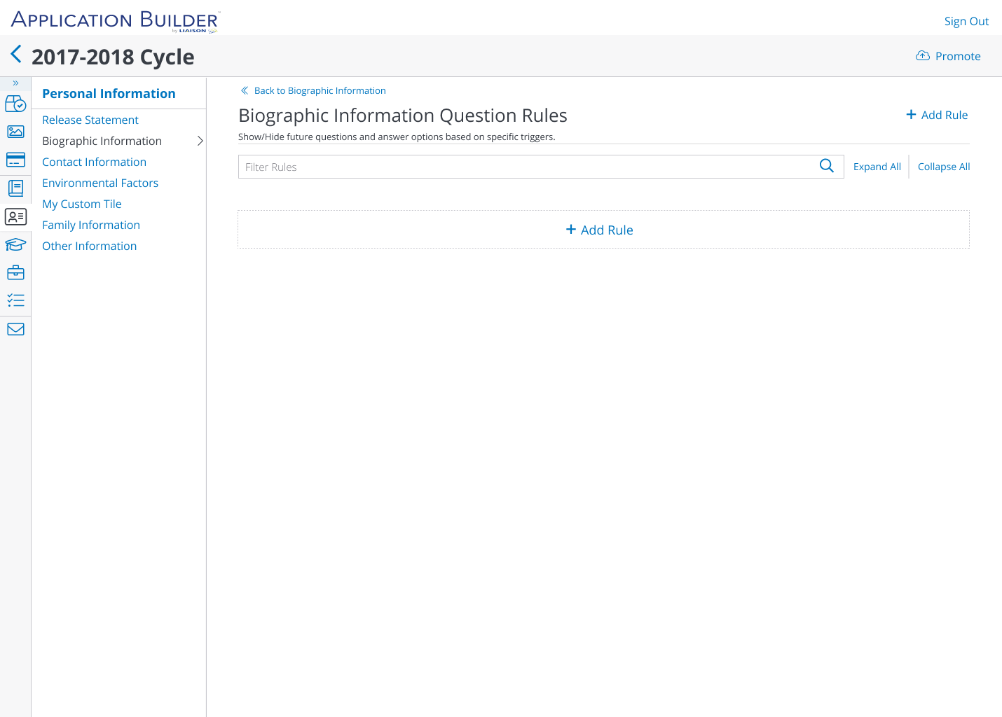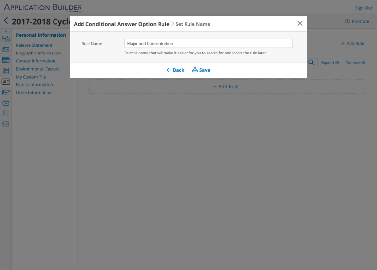 This meant that we had to figure out and design our own workflow that would allow users to configure Question Rules based on how our applications are structured: